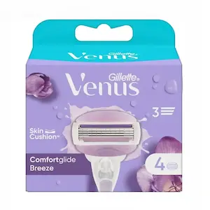 تیغ یدک زنانه ژیلت مدل Venus ComfortGlide Breeze سه لبه بستۀ ۴ عددی ضد حساسیت
