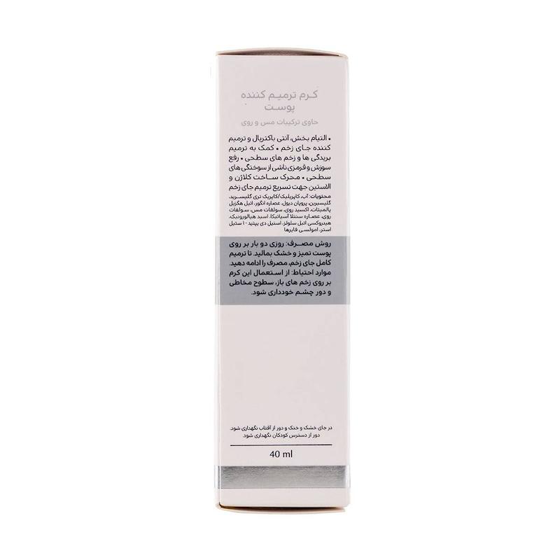 نحوه استفاده: روزانه دو بار (صبح و شب) مقدار مناسبی از کرم را روی ناحیه آسیبدیده پوست بمالید و بهآرامی پخش کنید تا جذب شود.