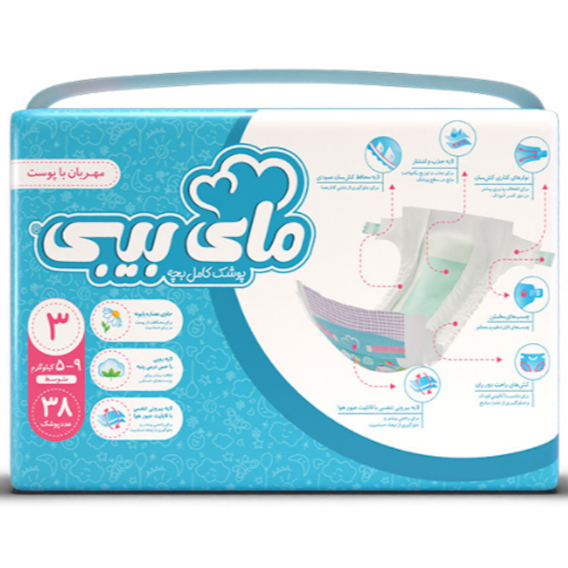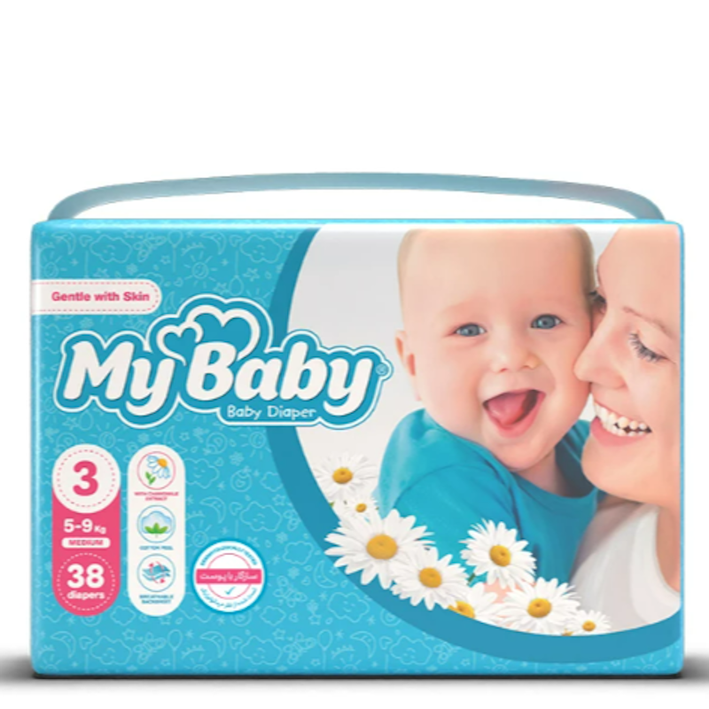 خرید پوشک چسبی مای بیبی سایز ۳ بستۀ ۳۸ عددی