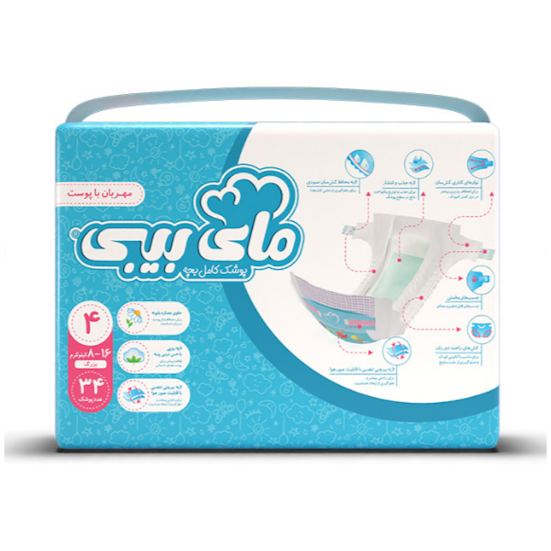 خرید پوشک بچه مای بیبی سایز ۴ بستۀ ۳۴ عددی