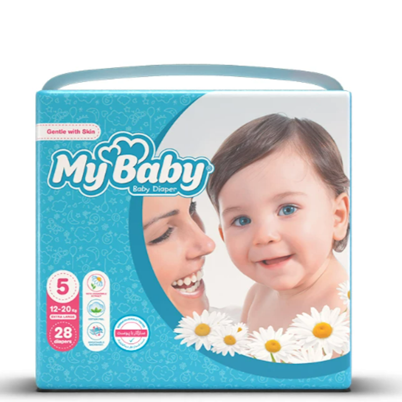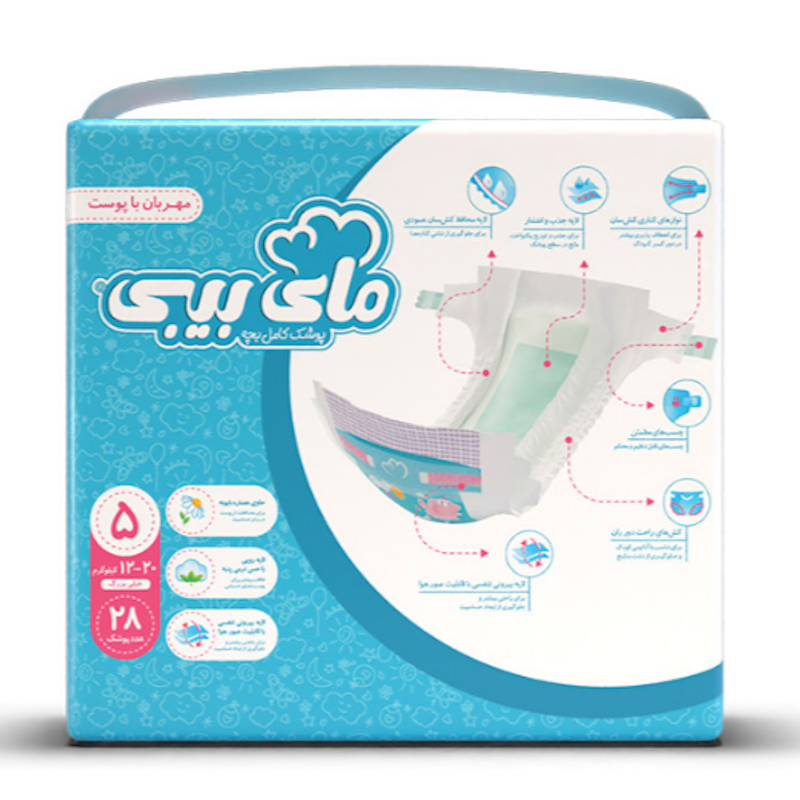 خرید پوشک چسبی مای بیبی سایز ۵ بستۀ ۲۸ عددی