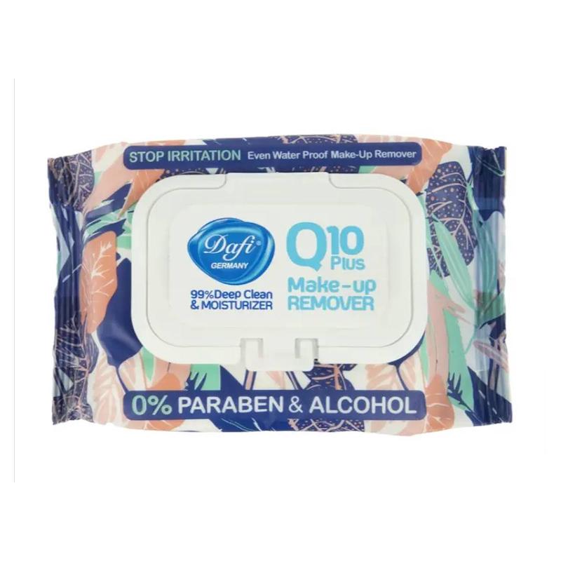 دستمال مرطوب دافی Dafi Q10 Plus Stop Irritation فاقد پارابن و الکل بوده و با pH متعادل، مناسب استفاده روزانه برای انواع پوست، حتی پوستهای حساس است. این محصول ضدحساسیت، مناسب افرادی است که میخواهند آرایش خود را بدون آسیب رساندن به پوست پاک کنند و در عین حال رطوبت طبیعی پوست حفظ شود.