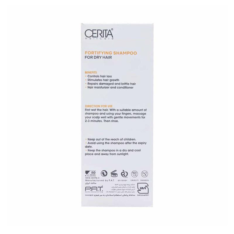 شامپو تقویتکننده و ضد ریزش موی خشک سریتا Cerita Fortifying Shampoo یک شوینده تخصصی برای افرادی است که با ریزش مو، خشکی ساقه و حساسیت پوست سر مواجه هستند. این شامپو با فرمولاسیون مخصوص موهای خشک و معمولی تهیه شده و ترکیبی از عصارههای گیاهی، ویتامین B6 و مواد تقویتکننده دارد که همزمان به بهبود وضعیت پوست سر و افزایش استحکام تار مو کمک میکنند. وجود عصاره نعناع فلفلی، گزنه، رزماری و مریمگلی سبب افزایش خونرسانی به پوست سر شده و به همین دلیل این محصول برای خانمها و آقایانی که دچار ریزش ناشی از ضعف فولیکول یا آسیبهای محیطی هستند بسیار مناسب است.
