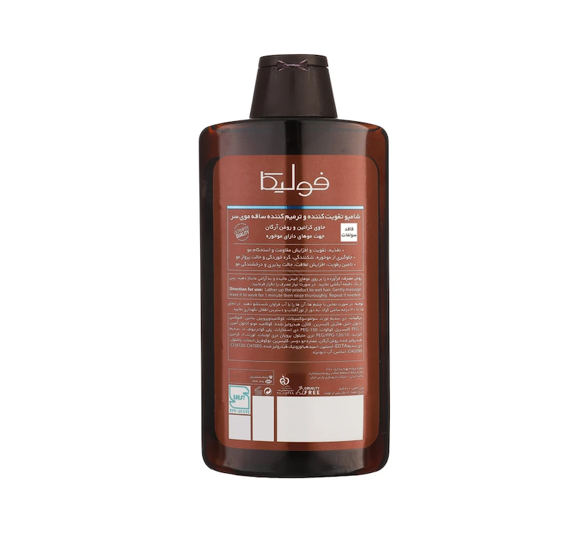 شامپو تقویت کننده و ترمیم کننده موی سر حاوی کراتین و روغن آرگان فولیکا با حجم ۴۰۰ میلی لیتر، برای تقویت و ترمیم موهای آسیبدیده و دارای موخوره طراحی شده است. این شامپو با فرمولاسیون غنی از کراتین مشکلات رایج موها مانند موخوره، شکنندگی، وز شدن و گره خوردگی را برطرف میکند. با مصرف منظم این شامپو رطوبت موها تامین شده و لطیف، حالتپذیر و درخشنده میشوند.