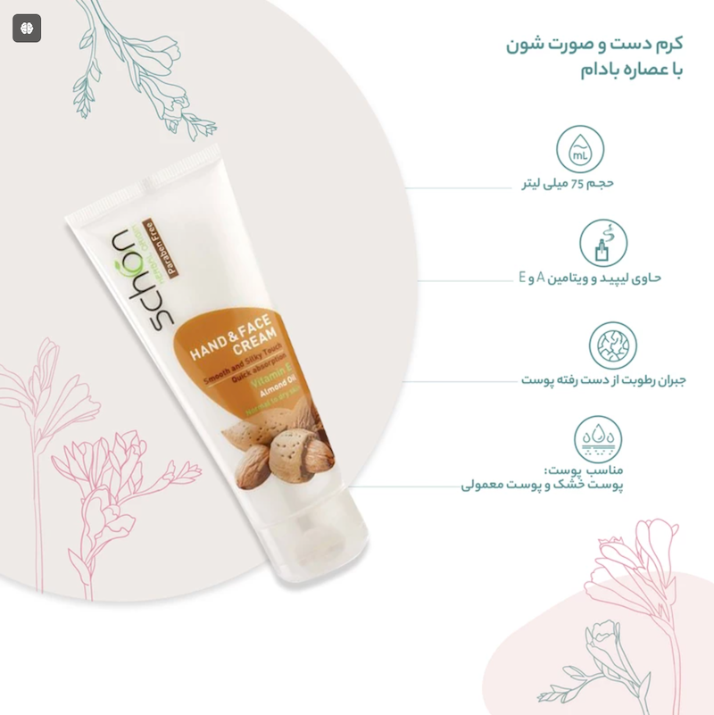 خرید کرم دست و صورت شون حاوی عصارۀ بادام حجم ۷۵ میلی لیتر