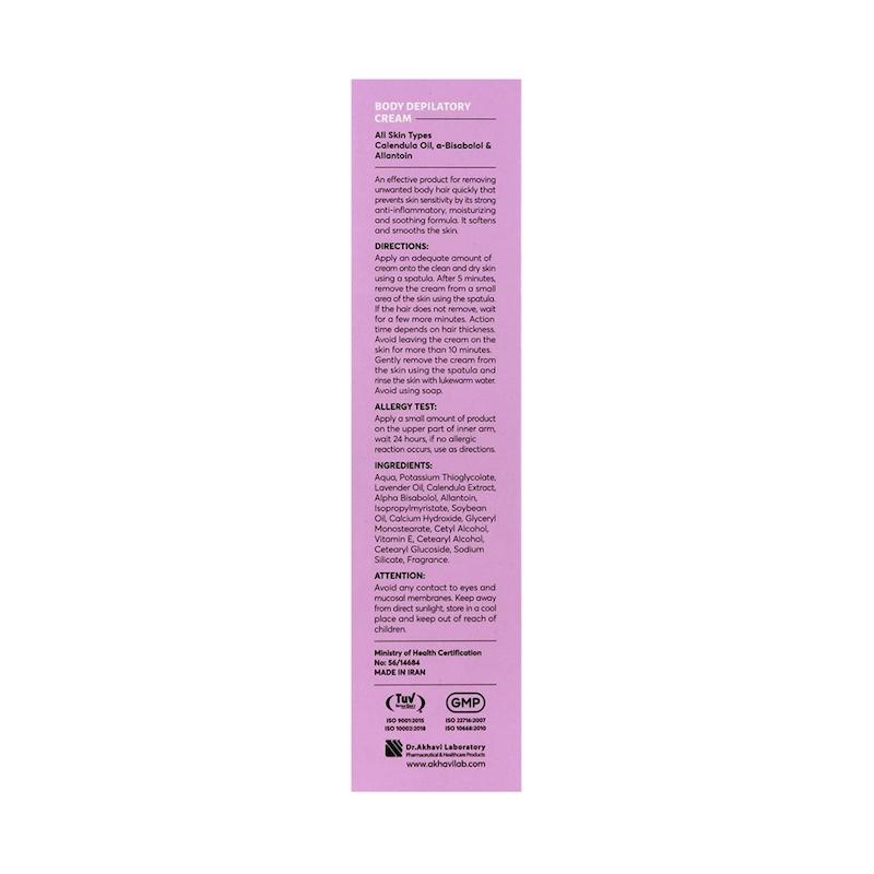 نحوه استفاده: مقدار کافی از کرم را با کاردک روی پوست تمیز و خشک بمالید تا موها کاملاً پوشانده شوند. پس از ۵ دقیقه، بخش کوچکی را تست کنید و در صورت جدا شدن مو، کرم را برداشته و پوست را با آب ولرم بشویید. زمان تماس نباید بیش از ۱۰ دقیقه باشد.