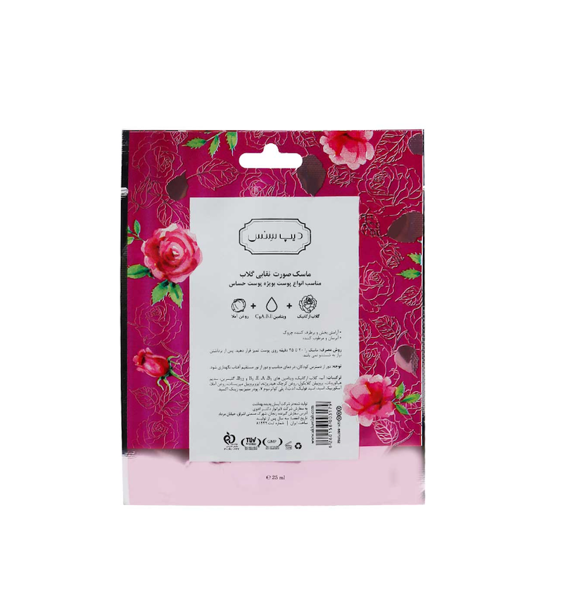 خرید ماسک صورت نقابی گلاب دیپ سنس مدل Organic Rose Water بستۀ تکی حجم ۲۵ میلی لیتر