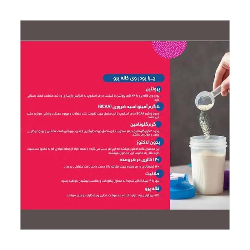 پودر پروتئین کاله پرو (Kalleh Pro) طعم وانیلی، یک مکمل پروتئینی باکیفیت و کاملاً استاندارد است که برای افرادی طراحی شده که به سلامت، تناسباندام و تقویت عضلات خود اهمیت میدهند. این محصول از پروتئین وی (Whey Protein) با منبع لبنی تولید شده و در هر اسکوپ ۳۲.۵ گرمی، ۲۴ گرم پروتئین خالص، ۱۲۰ کالری انرژی و تنها ۱.۵ گرم چربی دارد. حذف کامل لاکتوز از فرمولاسیون، این پودر را به گزینهای مناسب برای افراد حساس به لاکتوز تبدیل کرده است. وجود گلوتامین طبیعی و میزان مناسب کلسیم نیز نقش مهمی در ریکاوری عضلانی، ترمیم بافتها، تقویت سیستم ایمنی و افزایش مقاومت بدن در تمرینات دارد.