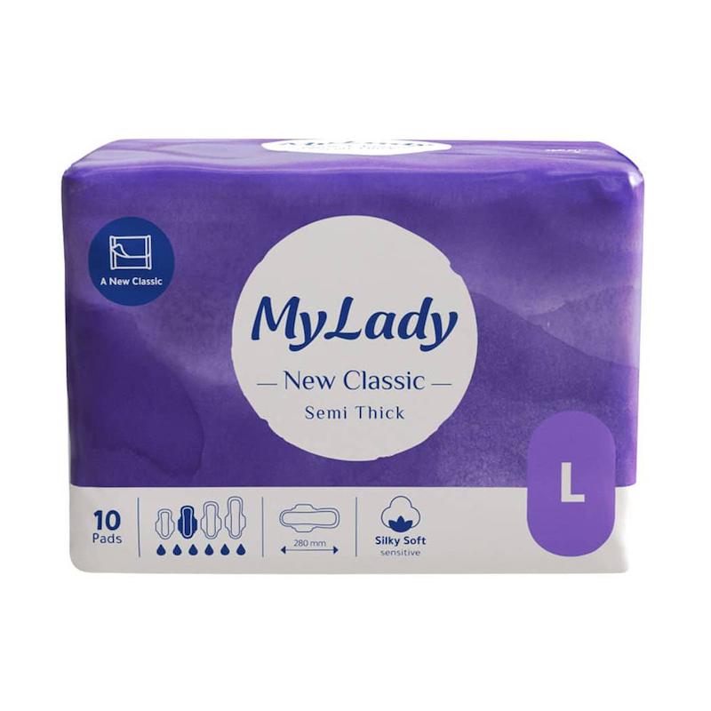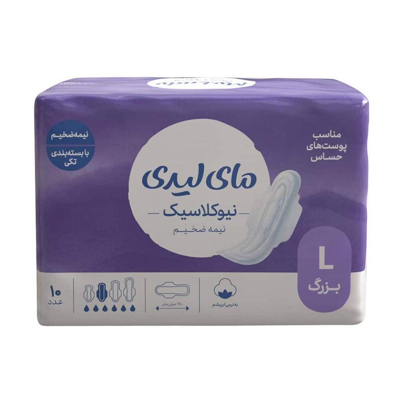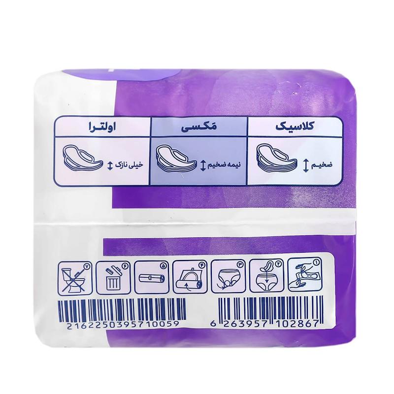 خرید نوار بهداشتی بنفش مای لیدی مدل New Classic Semi Thick نیوکلاسیک نیمه ضخیم بستهٔ ۱۰ عددی