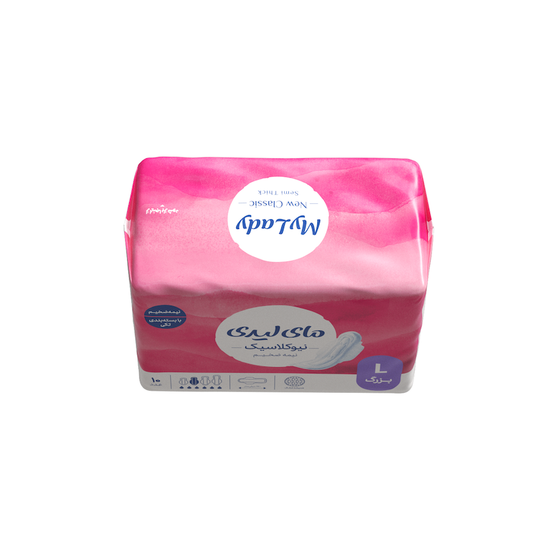 خرید نوار بهداشتی صورتی مای لیدی مدل نیوکلاسیک نیمه ضخیم بستهٔ ۱۰ عددی
