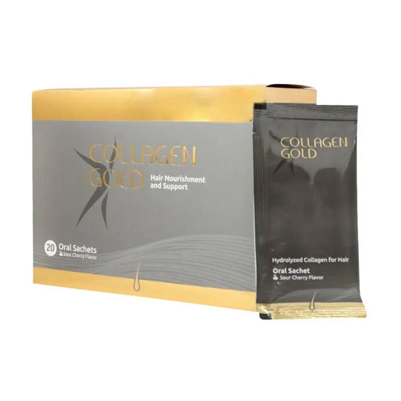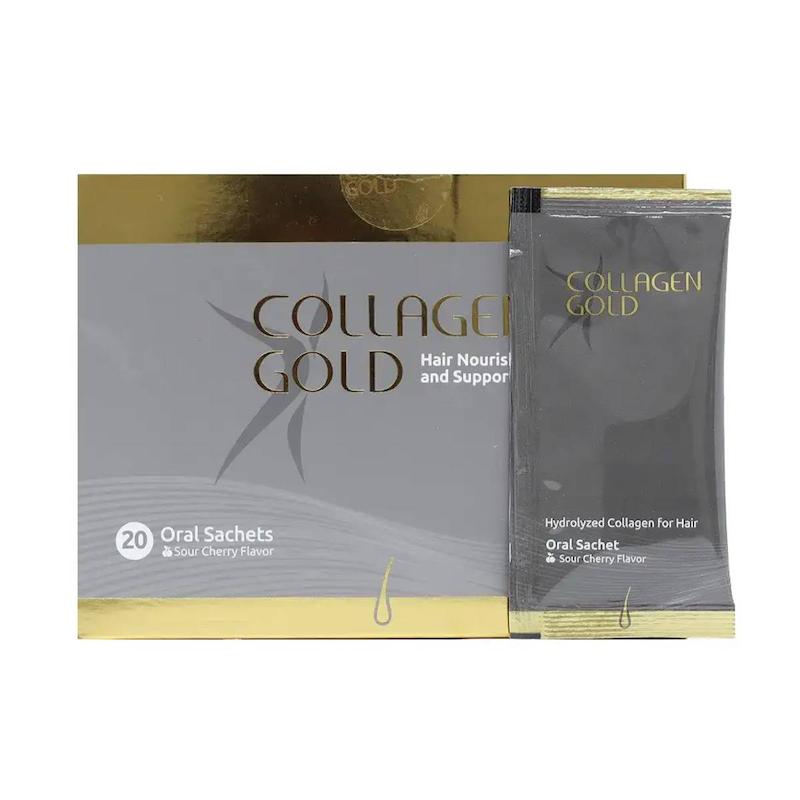 خرید ساشه کلاژن آدریان مدل Collagen Gold مخصوص مو با طعم آلبالو بسته 20 عددی