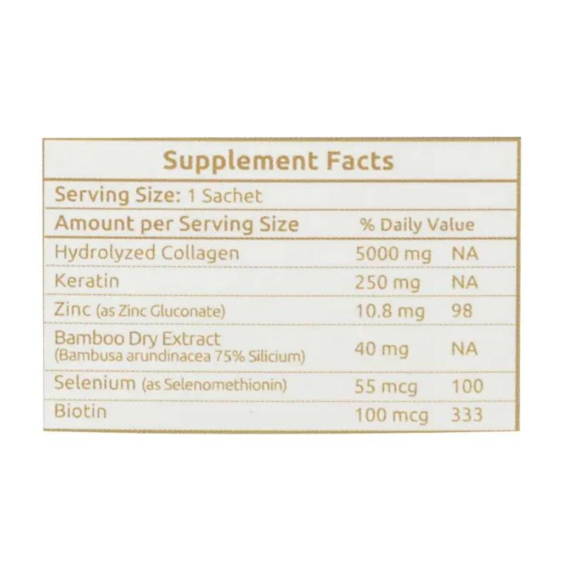 حاوی کلاژن هیدرولیز شده، کراتین، بیوتین، زینک و سلنیوم