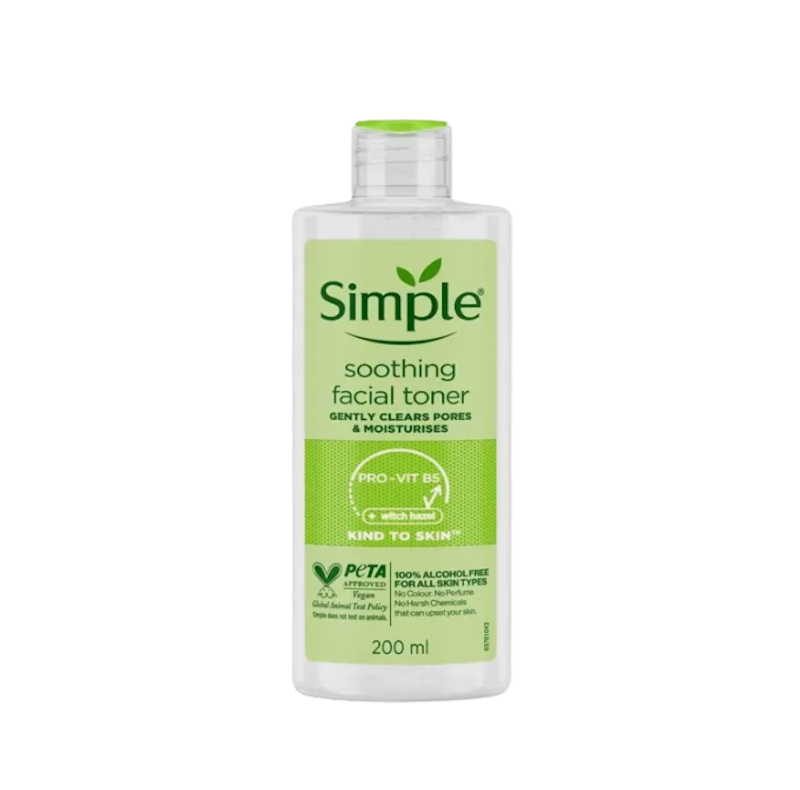تونر سیمپل مدل Kind To Skin حجم 200 میلی لیتر محصولی التیامبخش و تسکیندهنده در جهت پاکسازی بهتر پوست و تنظیم pH صورت است. این تونر ملایم فاقد رنگوبو بوده و با فرمولاسیونی بر پایۀ آب، به حذف باقیمانده مواد آرایشی و حفظ سلامت و شادابی پوست کمک میکند.