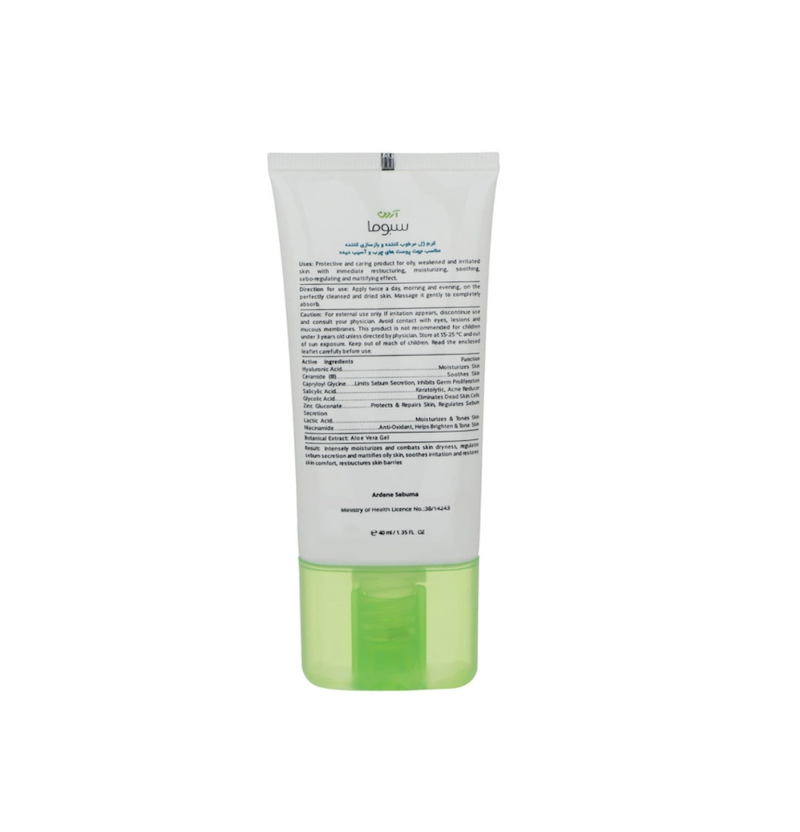 کرم ژل مرطوبکننده و بازسازیکنندهٔ آردن سبوما با وزن ۴۰ گرم، مرطوبکننده و بازسازیکنندۀ موثر برای پوستهای چرب، حساس و کمآب است. این محصول مواد ضروری موجود در لایۀ محافظتی پوست را با دارابودن خواص آبرسانی قوی، التیامبخشی و متعادلکنندۀ چربی پوست، فراهم میکند.