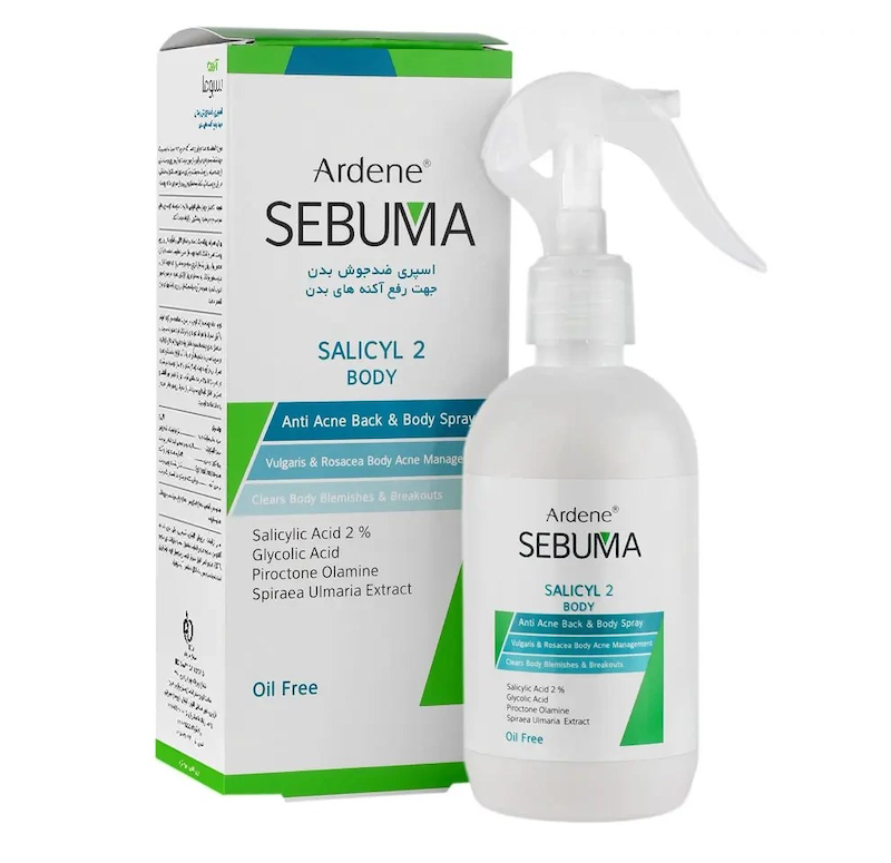 خرید اسپری ضدجوش بدن آردن سبوما حاوی %۲ اسید سالیسیلیک وزن ۲۵۰ گرم
