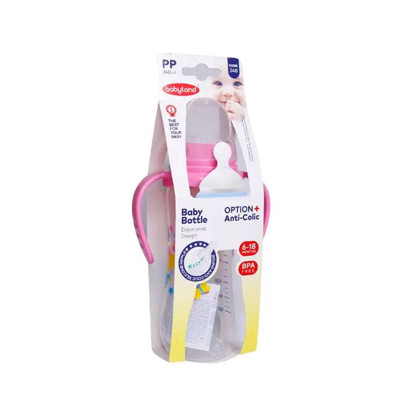 خرید شیشه شیر دسته دار آنتی کولیک بیبی لند مدل ۲۴۸ حجم ۲۴۰ میلی لیتر