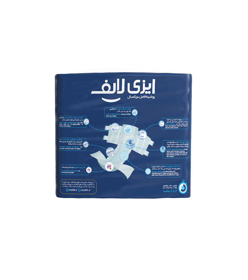پوشینه کامل بزرگسال ایزی لایف (Easy Life) یک راهحل بهداشتی و مطمئن برای مدیریت بیاختیاری ادرار در بزرگسالان است که طراحی شده تا راحتی، احساس امنیت و استقلال را حتی در شرایط دشوار زندگی فراهم کند. این پوشینه مخصوص آقایان و بانوان است و با مواد با کیفیت و فناوری پیشرفته تولید شده تا نیازهای بهداشتی و مراقبتی را با دقت برآورده کند.