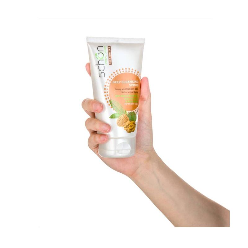 فرمولاسیون این اسکراب شامل عصاره گردو غنی از ویتامین E با خاصیت آنتی‌اکسیدانی است که به محافظت از پوست در برابر عوامل محیطی کمک می‌کند. یادگیری ترکیباتی مانند شی باتر و سدیم هیالورونات، باعث آبرسانی، حفظ رطوبت و افزایش نرمی پوست پس از لایه‌برداری می‌شود. وجود گلیسیرین نیز به جلوگیری از احساس کشیدگی کمک کرده و پوست را نرم و شاداب نگه می‌دارد. اسکراب صورت شون (Schon) برای انواع پوست قابل استفاده است و به بهبود بافت، درخشندگی و یکنواختی رنگ پوست کمک می‌کند.