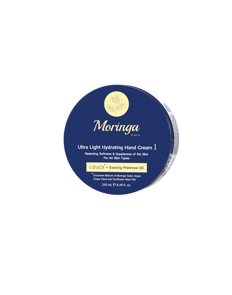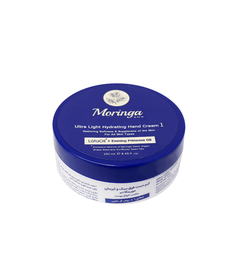 خرید کرم دست فوق سبک و آبرسان مورینگا اِمو شمارۀ 1 حجم 250 میلی لیتر