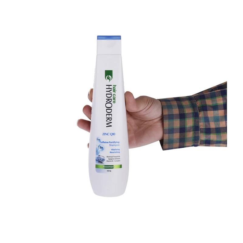 خرید شامپو تقویت کننده هیدرودرم مدل Zinc Q10 مناسب انواع مو با رایحۀ رزماری حجم 400 میلی لیتر