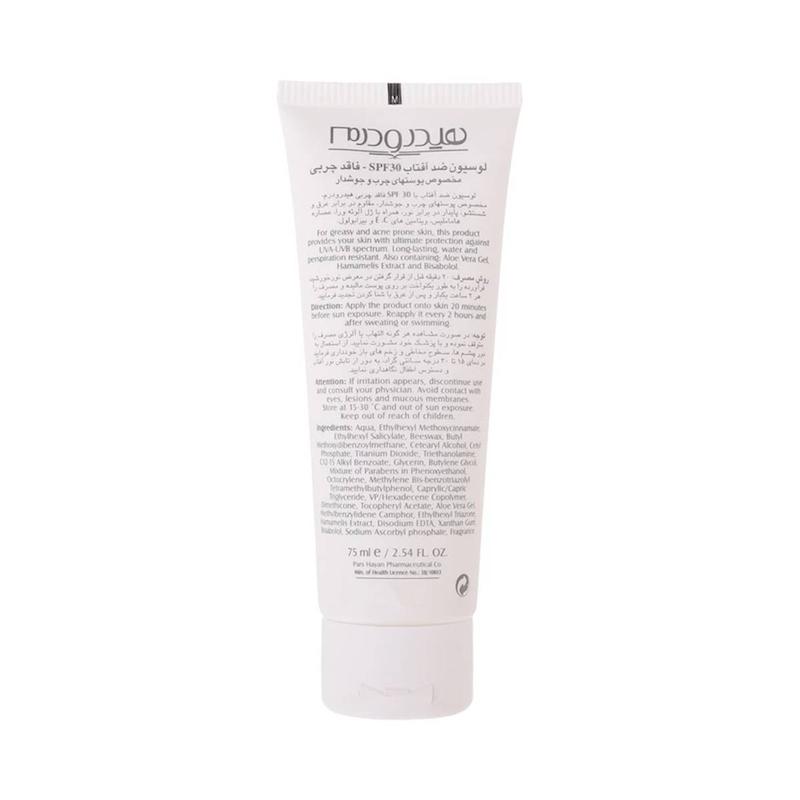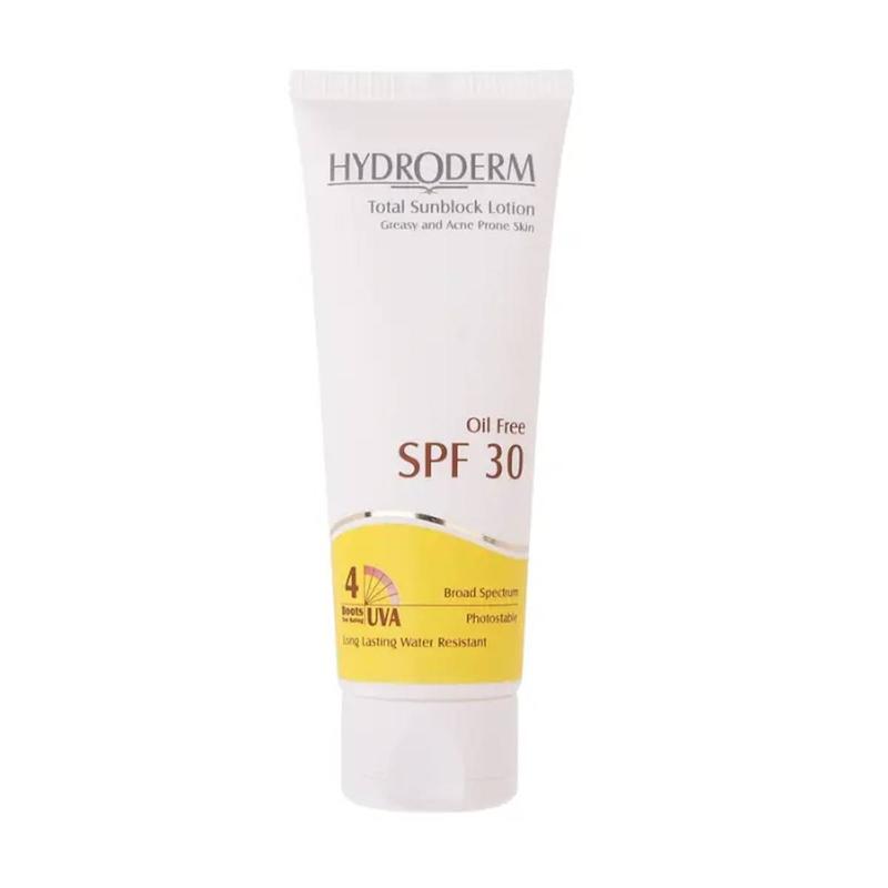 خرید لوسیون ضدآفتاب هیدرودرم بدون رنگ مدل Total Sunblock Oil Free فاقد چربی مناسب پوست چرب و مختلط دارای SPF30 حجم 75 میلی لیتر