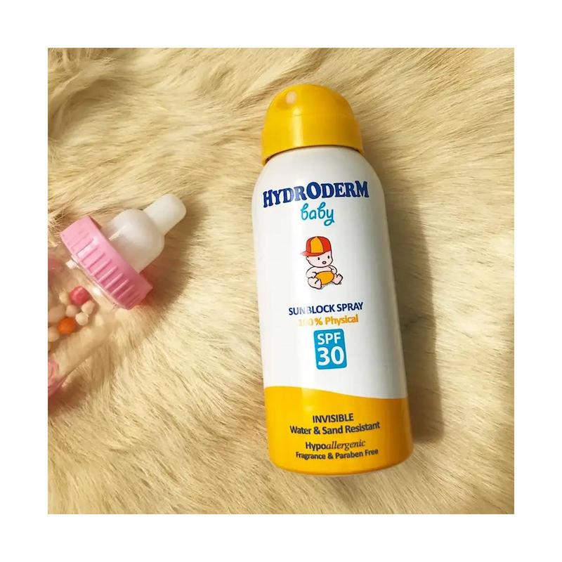 خرید اسپری ضدآفتاب کودکان هیدرودرم مدل physical دارای SPF30 حجم 100 میلی لیتر