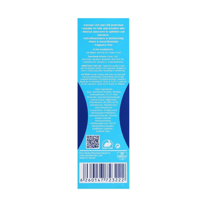 نحوه استفاده: مقداری از کرم ضدآفتاب سان سیف را ۲۰ تا ۳۰ دقیقه قبل از قرار گرفتن در معرض نور خورشید روی پوست تمیز کودک بمالید و به آرامی پخش کنید. برای حفاظت مداوم، هر ۲ تا ۳ ساعت یا پس از شنا و تعریق دوباره کرم را تمدید کنید.