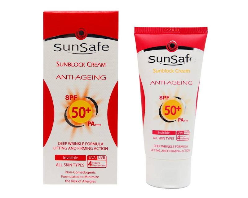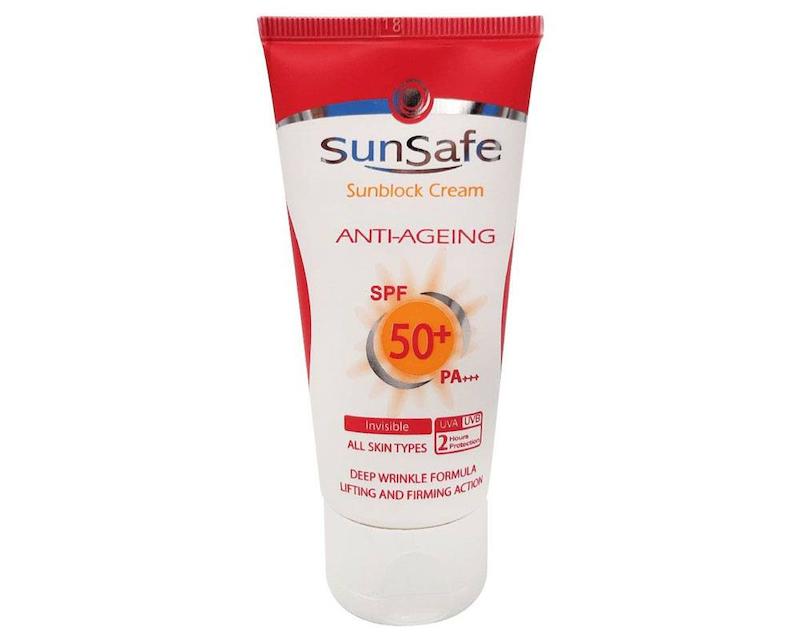 خرید کرم ضدآفتاب و ضدچروک سان سیف بدون رنگ مناسب انواع پوست دارای SPF50 حجم 50 میلی لیتر