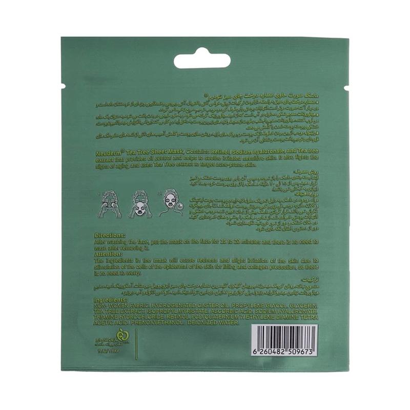 خرید ماسک صورت ورقهای نئودرم مدل Tea-Tree حاوی عصارۀ درخت چای سبز بستهبندی تکی