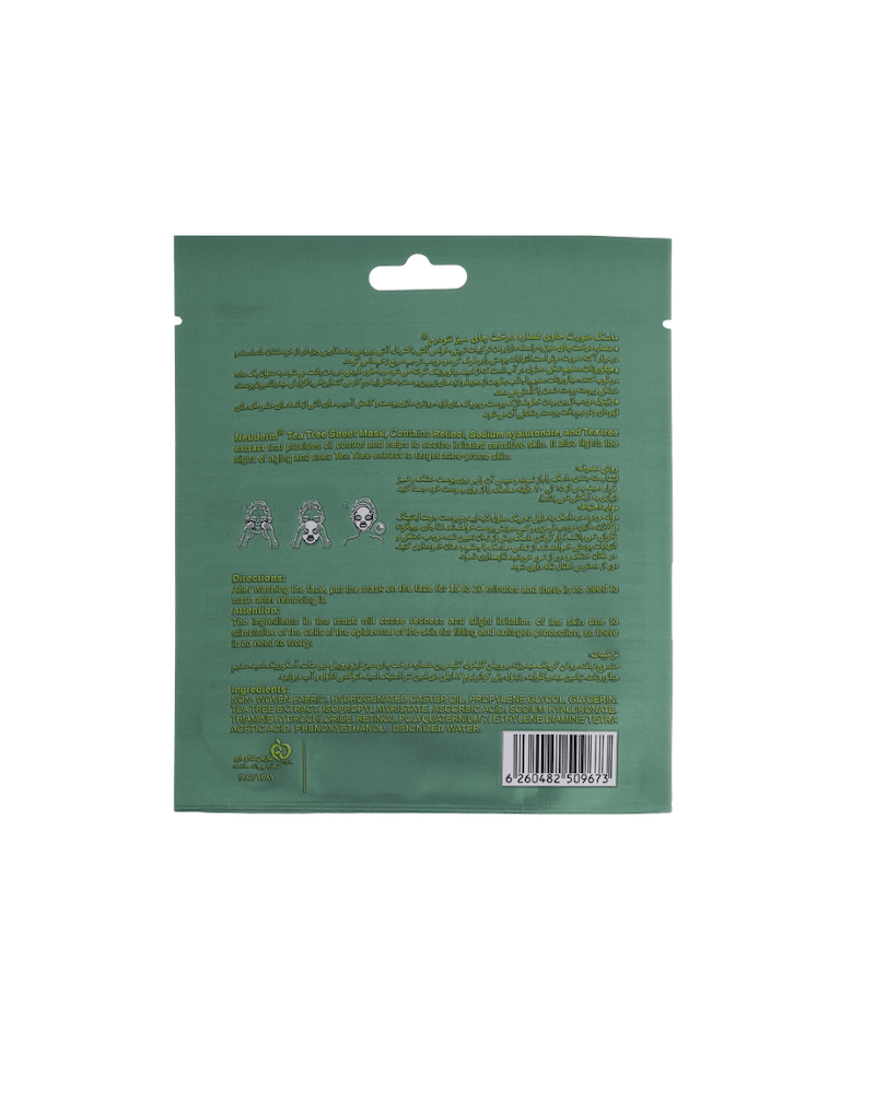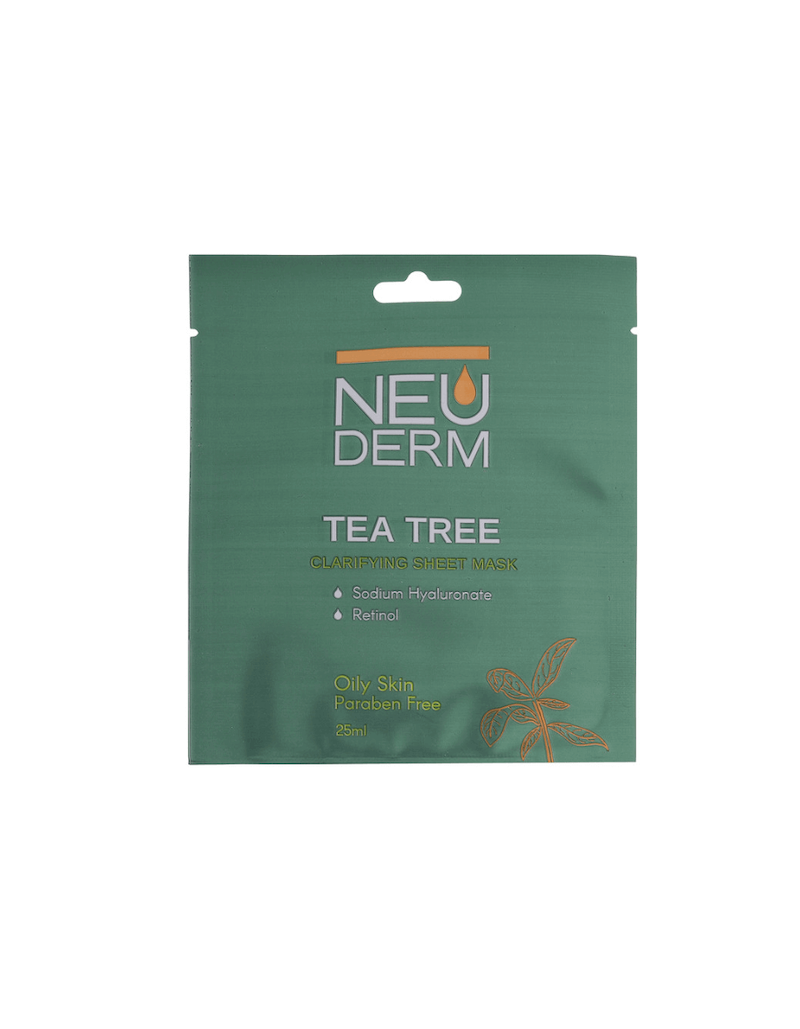 خرید ماسک صورت ورقهای نئودرم حاوی عصارۀ درخت چای سبز بستهبندی تکی
