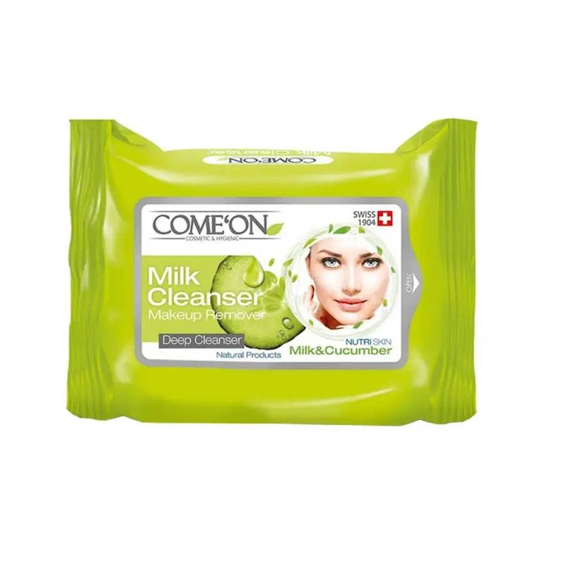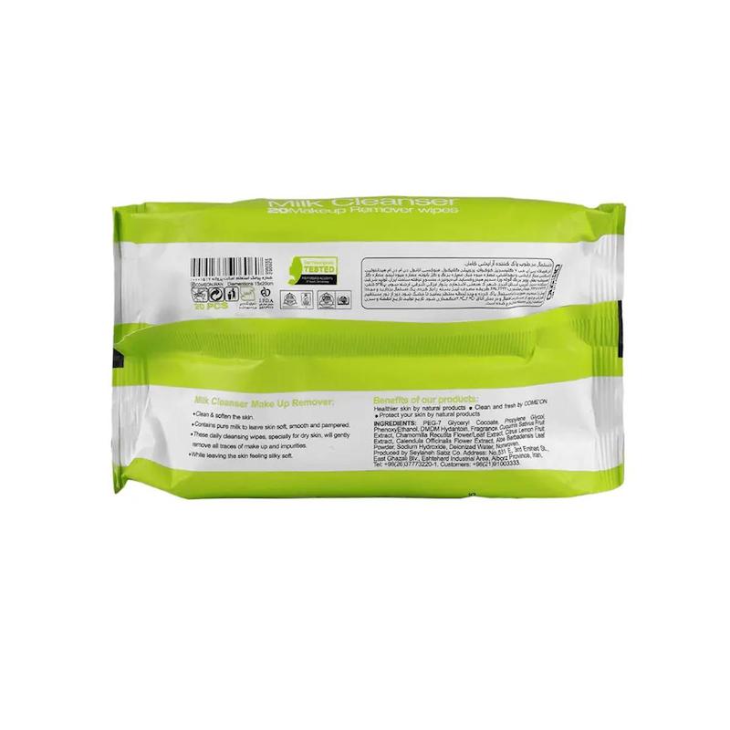 خرید دستمال مرطوب پاککننده آرایش کامان مدل milk cleanser بستۀ 20 عددی