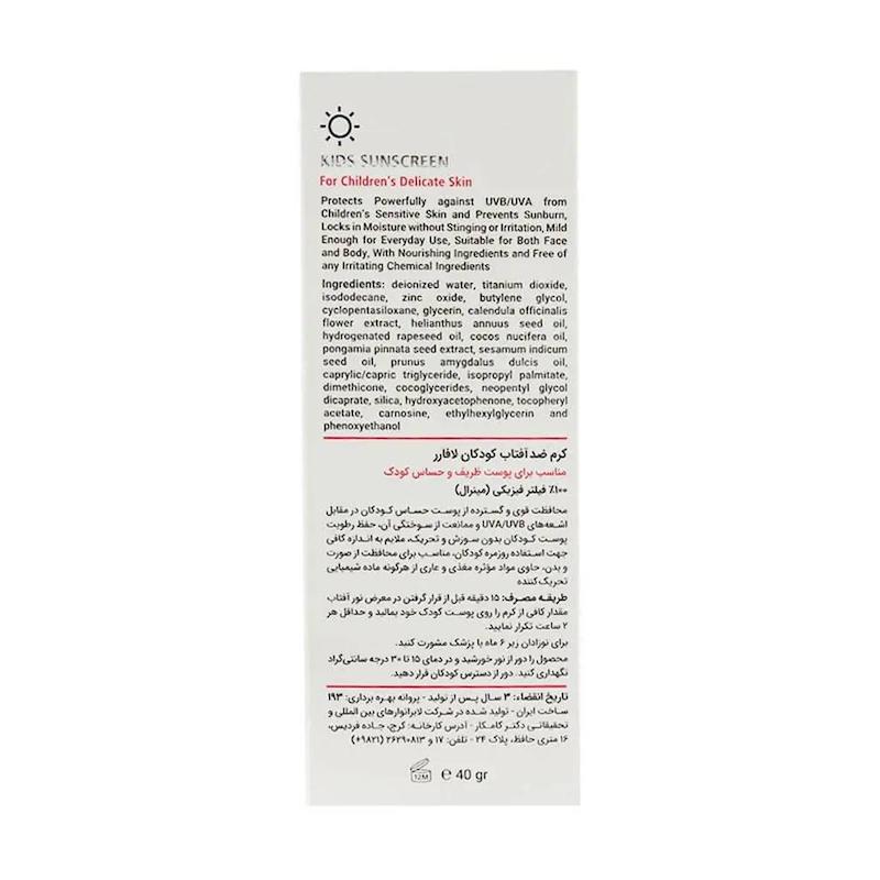 این محصول برای کودکان بالای ۶ ماه قابل استفاده بوده و در یک تیوپ ۴۰ گرمی باکیفیت عرضه میشود. برای بهترین نتیجه، کافی است ۱۵ دقیقه قبل از تماس با نور خورشید از آن استفاده کرده و هر ۲ ساعت تمدید نمایید.