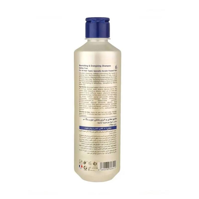 خرید شامپو مغذی و انرژی بخش مو مورینگا امو مدل Nourishing and Energizing شماره 6 حجم 400 میلی لیتر مناسب برای انواع مو به ویژه کراتینه