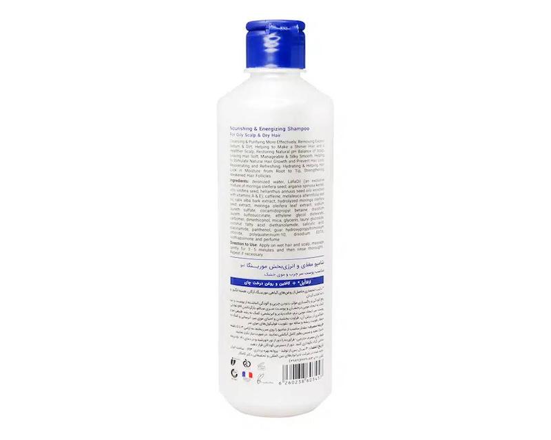 خرید شامپو مغذی و انرژیبخش مو مورینگا امو شمارۀ 1 مناسب پوست سر چرب و موی خشک حجم 400 میلی لیتر