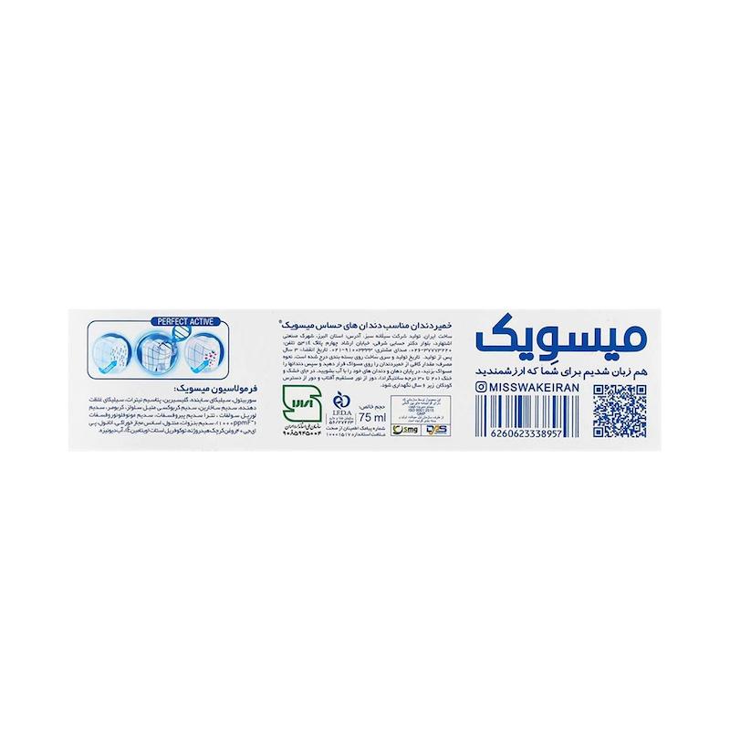 خمیر دندان زیرو سنسیتیو میسویک (Misswake Zero Sensitive Toothpaste) محصولی تخصصی برای مراقبت روزانه از دندانهای حساس است که با فرمولاسیون ملایم و علمی طراحی شده است. این خمیر دندان برای افرادی مناسب است که هنگام مصرف نوشیدنیهای سرد و گرم یا خوراکیهای شیرین و ترش دچار درد و تیرکشیدن دندان میشوند و به سلامت مینای دندان و لثههای خود اهمیت میدهند.