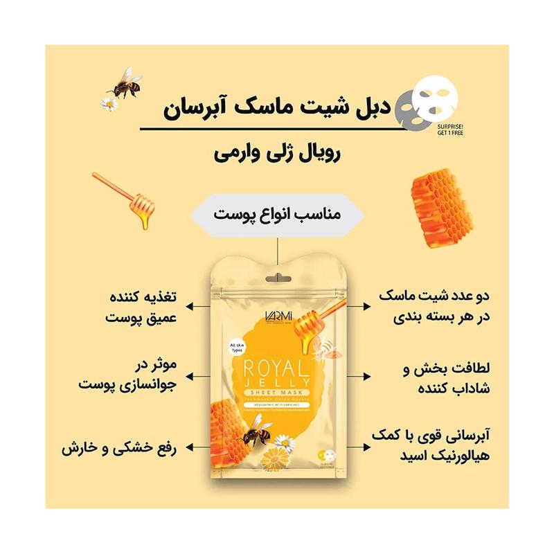 خرید ماسک صورت وارمی مدل Royal Jelly عسل حجم 45 میلی لیتر بسته 2 عددی