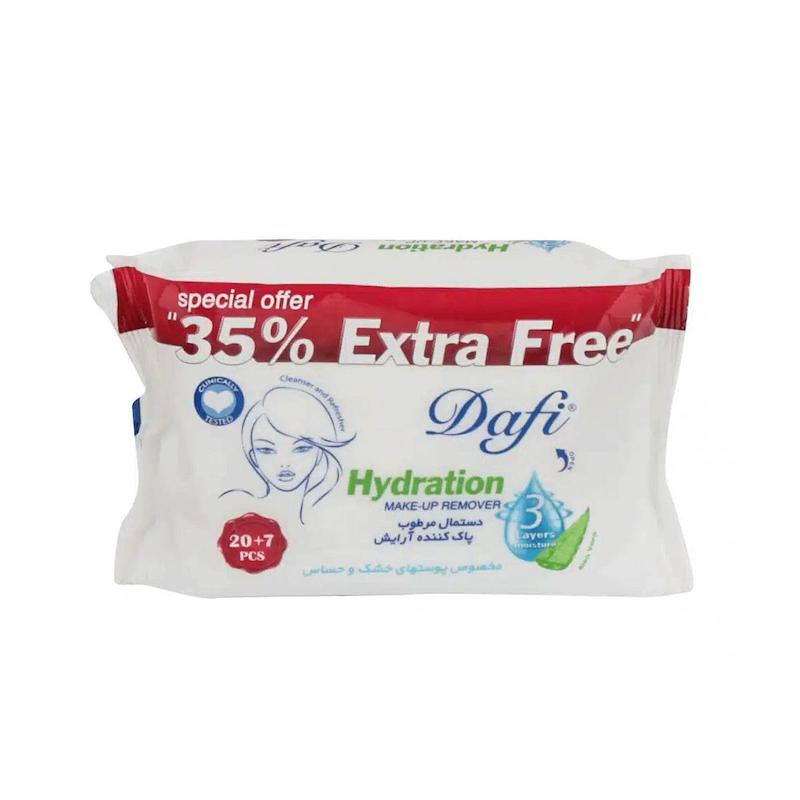 خرید دستمال مرطوب پاک کننده آرایش دافی مدل Extra Free مناسب پوست خشک و حساس بسته 27 عددی