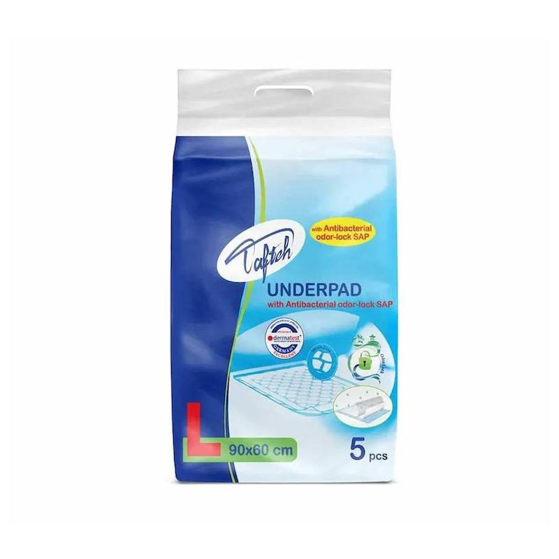 زیرانداز بهداشتی تافته (Tafteh) مدل آنتیباکتریال در بسته ۵ عددی و سایز بزرگ ۹۰×۶۰ سانتیمتر برای افرادی مناسب است که به یک پد جاذب مطمئن برای کنترل رطوبت و محافظت بهداشتی نیاز دارند. این پد پنجلایه با لایه رویی منسوج نبافته ساخته شده و لطافت کافی برای تماس مستقیم با پوست را فراهم میکند. ساختار چندلایه زیرانداز باعث میشود جذب رطوبت سریعتر انجام شود و سطح پد خشکتر بماند. وجود پودر جاذب آنتیباکتریال در مدل آنتیباکتریال زیرانداز تافته Tafteh نقش مهمی در کاهش بو، جلوگیری از رشد باکتری و پیشگیری از التهاب پوستی دارد؛ قابلیتی که آن را برای خانمها، آقایان و کودکان قابل استفاده میکند.