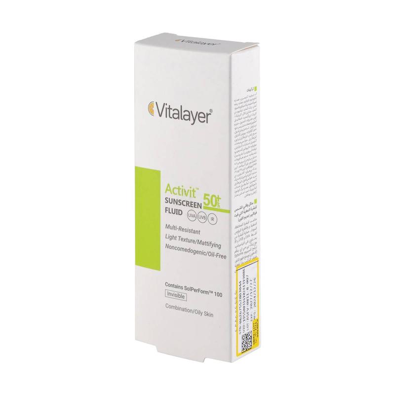 خرید فلوئید ضدآفتاب بی رنگ ویتالیر مدل Activit دارای +SPF50 مناسب پوست چرب حجم ۵۰ میلی لیتر