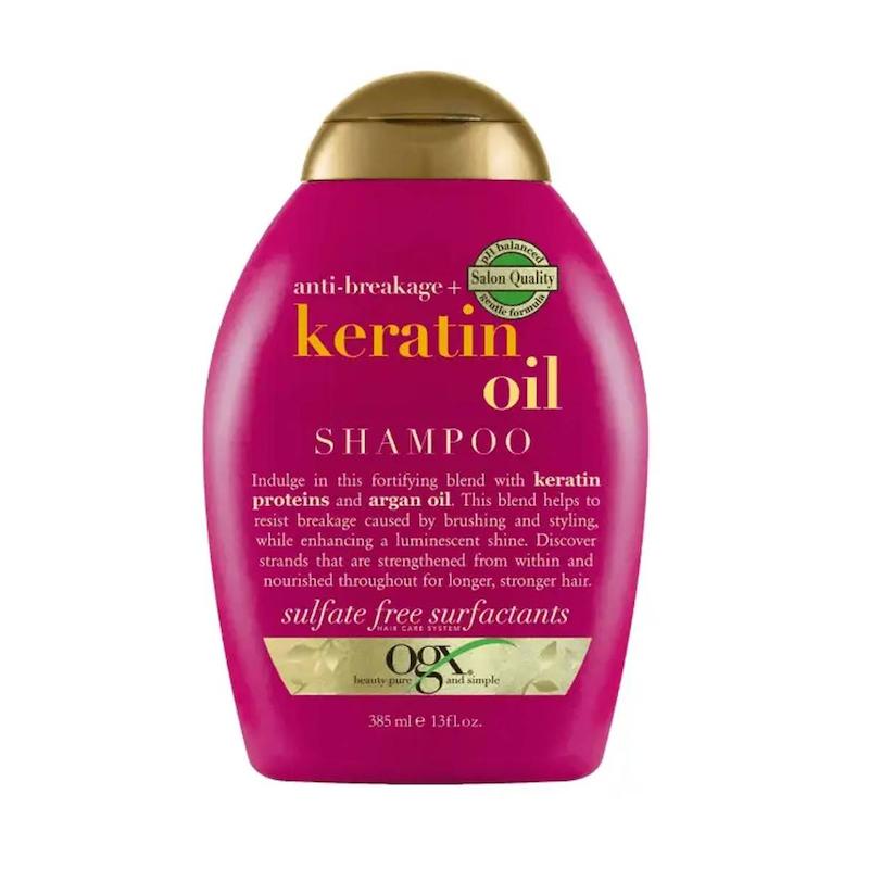 خرید شامپو روغن کراتین اوجی ایکس مدل sulfate free حجم 385 میلی لیتر مناسب انواع مو به غیر از موی فر