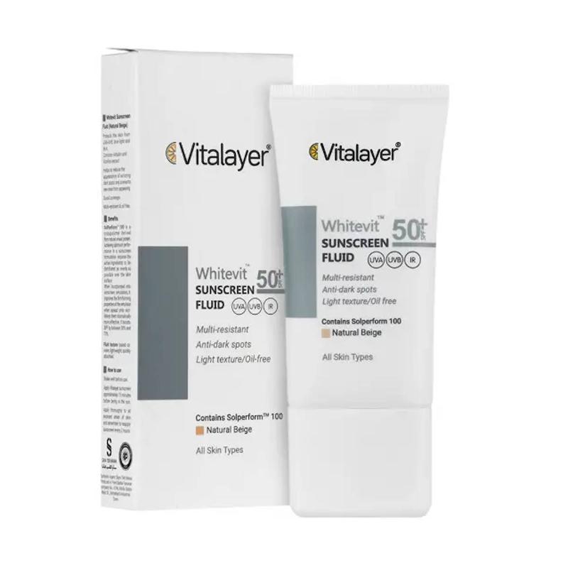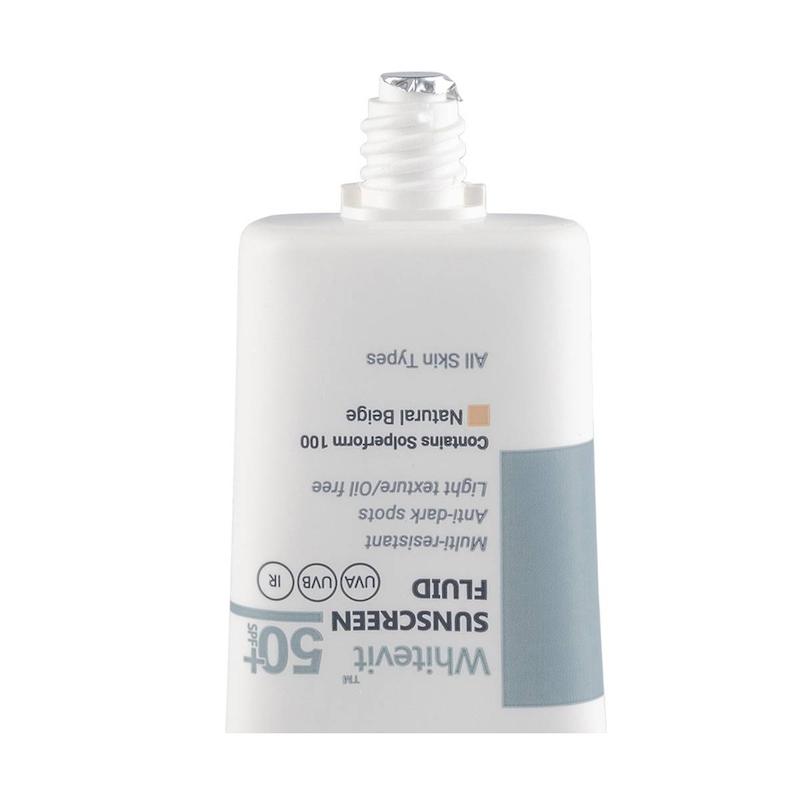 خرید فلوئید ضد آفتاب ضد لک رنگ بژ طبیعی ویتالیر مدل Whitevit دارای SPF50 حجم 50 میلی لیتر