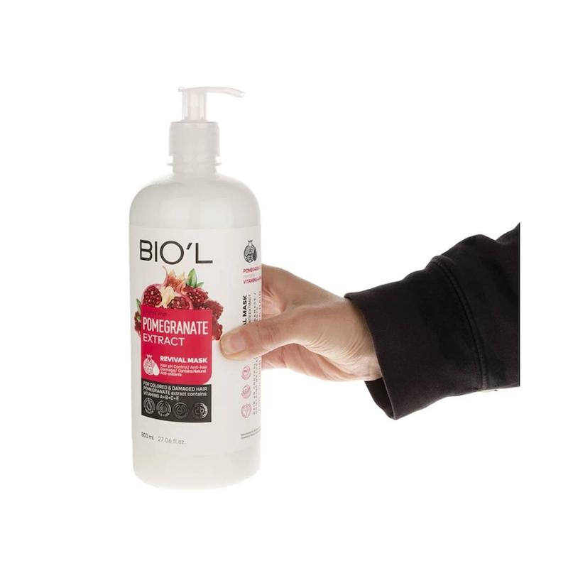 خرید ماسک مو بیول مدل Pomegranate مناسب موهای رنگشده حجم 800 میلی لیتر