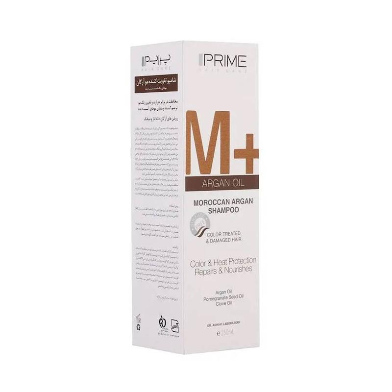 خرید شامپو تقویتکنندۀ پرایم مدل +M مناسب موهای رنگشده و آسیبدیده حاوی روغن آرگان حجم 250 میلی لیتر