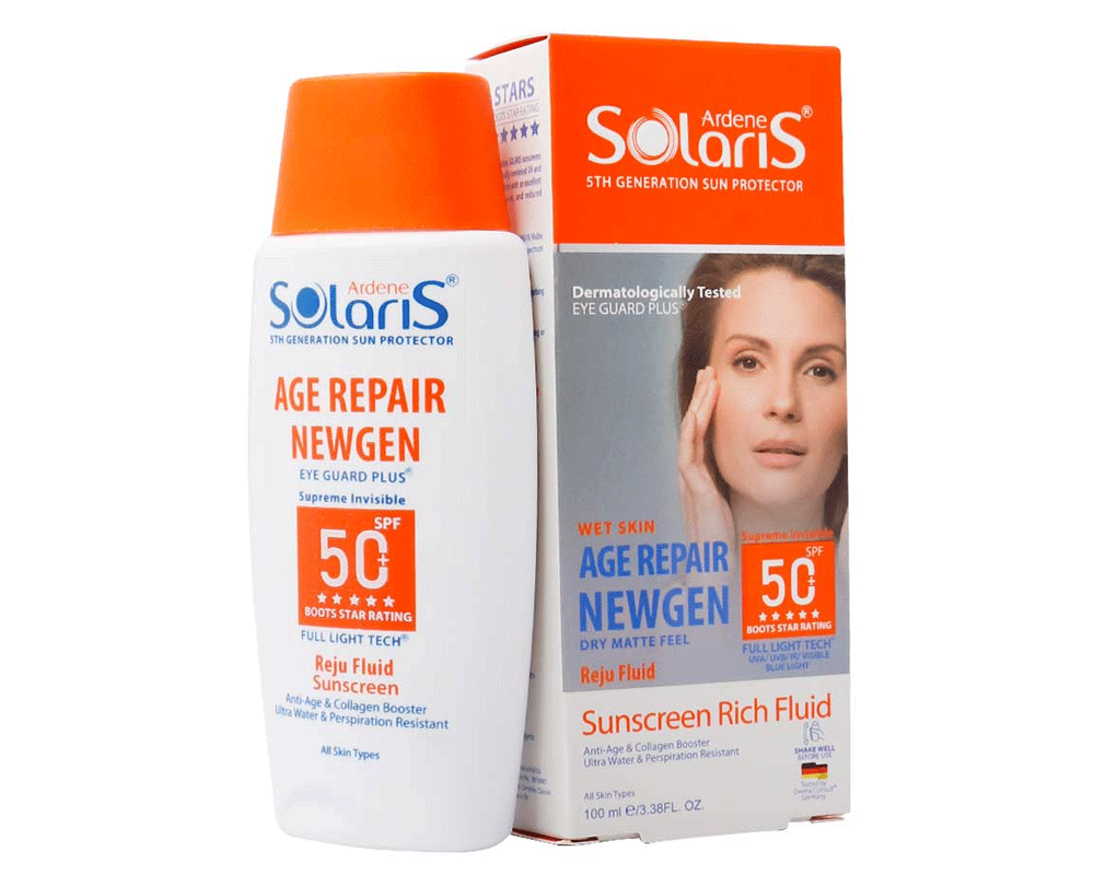 خرید فلوئید ضدآفتاب و ضدچروک آردن سولاریس مدل ایج ریپیر نیوژن دارای +SPF50 حجم 100 میلی لیتر