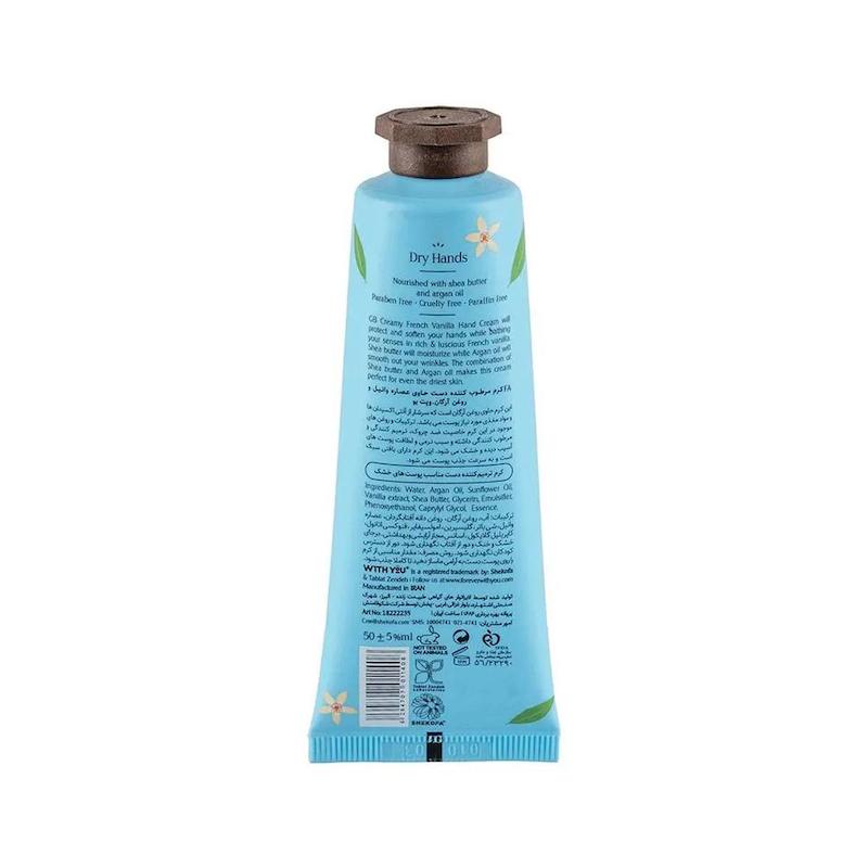 کرم مرطوبکننده دست ویت یو (with you Hand Cream) با عصاره وانیل و روغن آرگان، محصولی تخصصی برای پوستهای خشک است که علاوه بر رطوبترسانی، خاصیت ترمیمکننده و ضد چروک نیز دارد. این کرم مرطوبکننده دست ویت یو با ترکیبات مغذی خود بافتهای آسیب دیده پوست را بازسازی کرده و نرمی، لطافت و انعطاف پذیری پوست را افزایش میدهد. استفاده از این کرم برای افرادی که پوست خشک، حساس یا دچار علائم پیری سطحی هستند، توصیه میشود، زیرا ضمن حفظ رطوبت پوست، از ایجاد خطوط سطحی و چین و چروک جلوگیری میکند.
