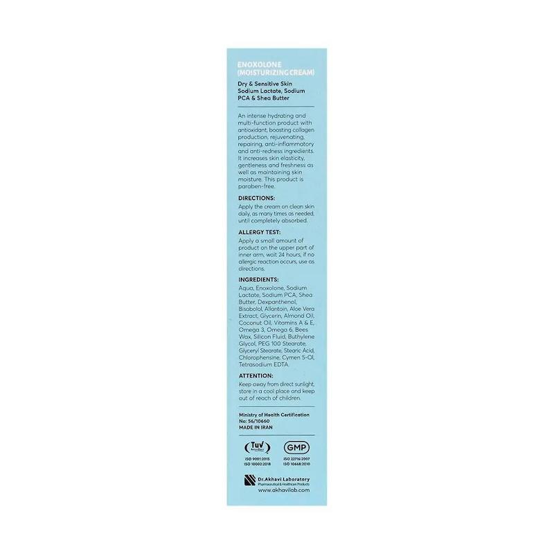 ترکیبات کلیدی این محصول شامل سدیم PCA، سدیم لاکتات، شی باتر، انوکسولون و ویتامین E هستند. سدیم PCA به جذب و نگهداری آب در لایههای پوست کمک کرده، سدیم لاکتات رطوبت عمقی و نرمی ایجاد میکند، شی باتر سد محافظ پوست را تقویت میکند و انوکسولون اثر آرامبخش روی پوست دارد. ویتامین E نیز به عنوان آنتیاکسیدان، پوست را در برابر عوامل محیطی محافظت کرده و به کاهش آسیبهای ناشی از رادیکالهای آزاد کمک میکند. این کرم فاقد پارابن بوده و مناسب انواع پوست است.
