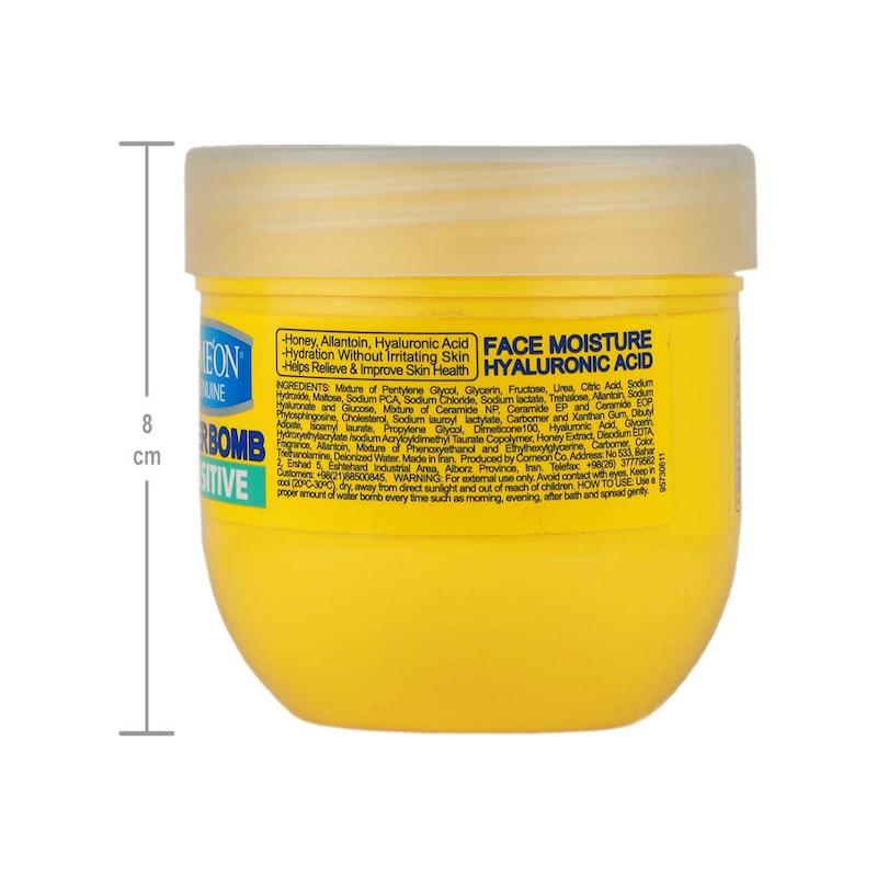 کرم آبرسان صورت و بدن کامان مدل واتربمب Sensitive یک مرطوبکننده تخصصی برای پوستهای حساس، خشک و دهیدراته است که با فرمولاسیونی سبک و بدون چربی، آبرسانی عمقی و ماندگار را فراهم میکند. این محصول از سری واتر بمب یا بمب آبرسان کامان بوده و برای استفاده روزانه صورت و بدن طراحی شده است. کرم آبرسان کامان (Comeon) با جذب سریع، بدون ایجاد حس چسبندگی یا سنگینی، به حفظ لطافت و نرمی طبیعی پوست کمک میکند.
