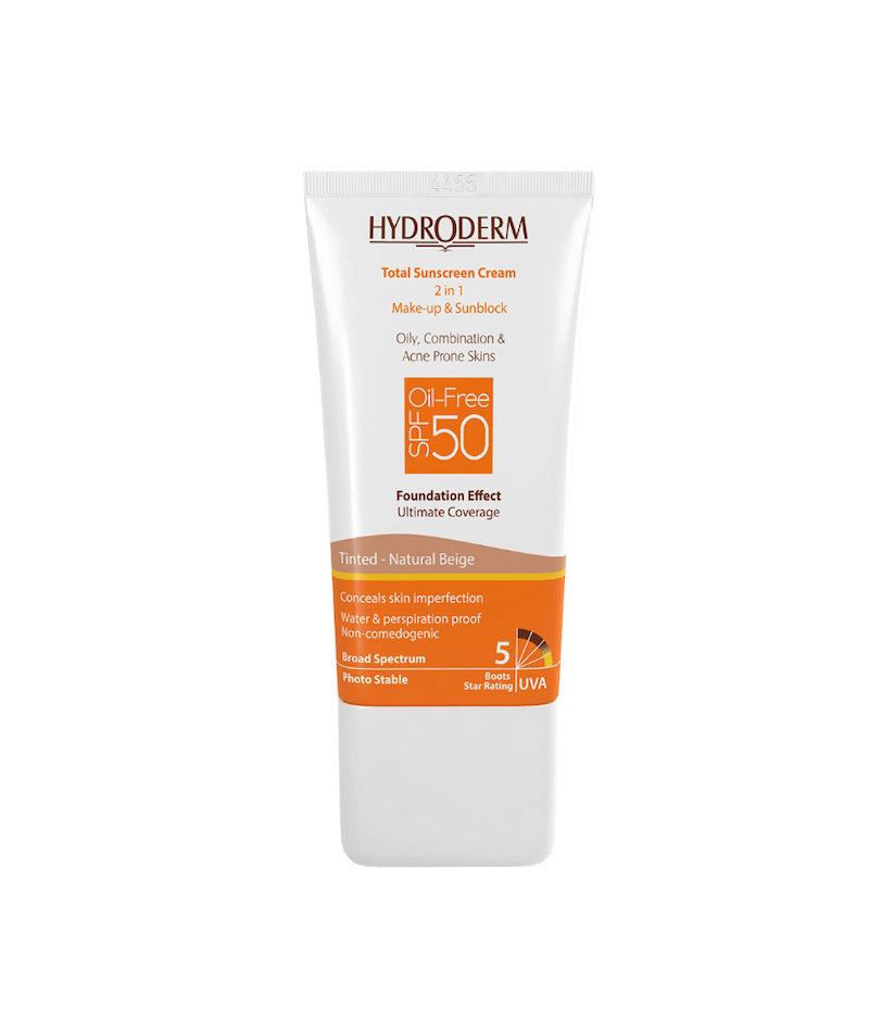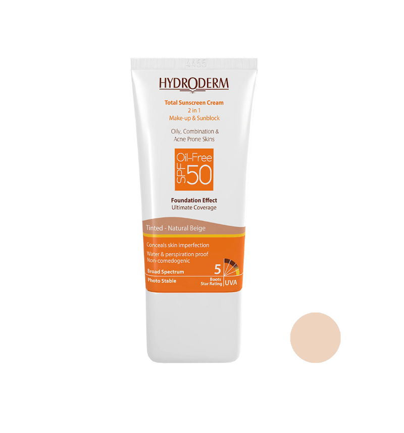 خرید کرم ضدآفتاب کرم پودری هیدرودرم بژ طبیعی دارای SPF50 حجم 40 میلی لیتر