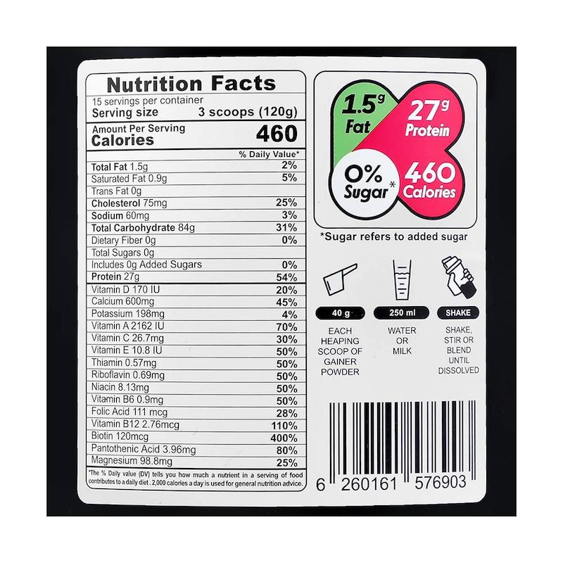 ویژگی‌های اصلی • نسبت کربوهیدرات به پروتئین ۳ به ۱ برای افزایش وزن و حجم عضلانی • حاوی ۲۳٪ پروتئین وی باکیفیت برای بازسازی عضلات • ۷۳٪ کربوهیدرات‌های پیچیده برای تامین انرژی پایدار • غنی شده با ویتامین‌ها و مواد معدنی • کمک به حفظ توده عضلانی و تسریع ریکاوری • فاقد لاکتوز و قند افزوده