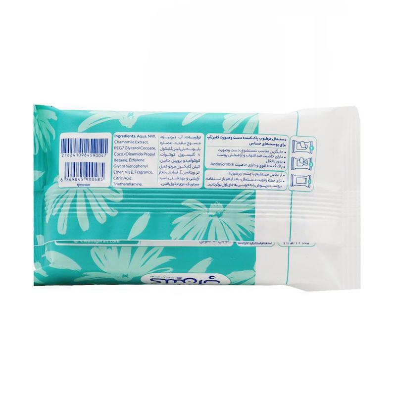 خرید دستمال مرطوب دست و صورت کلین آپ مدل Sensitive مخصوص پوست حساس بستۀ ۱۵ عددی